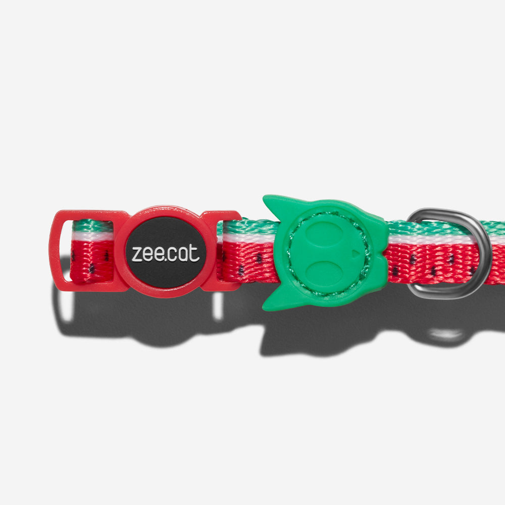 The Lola Zee.Cat collar is made of super soft polyester and is one size fits all. This fully adjustable collar has a breakaway buckle that automatically opens if your cat gets stuck.